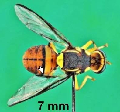 Fruit flies (family Tephritidae) are among the world’s most destructive horticultural pests; larvae feed inside fruit and vegetables, making produce unmarketable. They reproduce rapidly, and many species attack hundreds of host crops, fruits and vegetables.