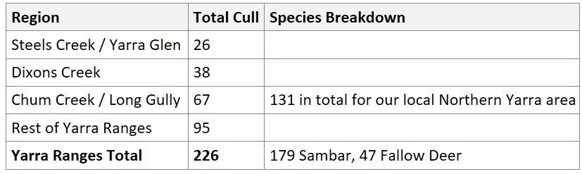 → Total Culled: 881 animals across Shire of Yarra Ranges